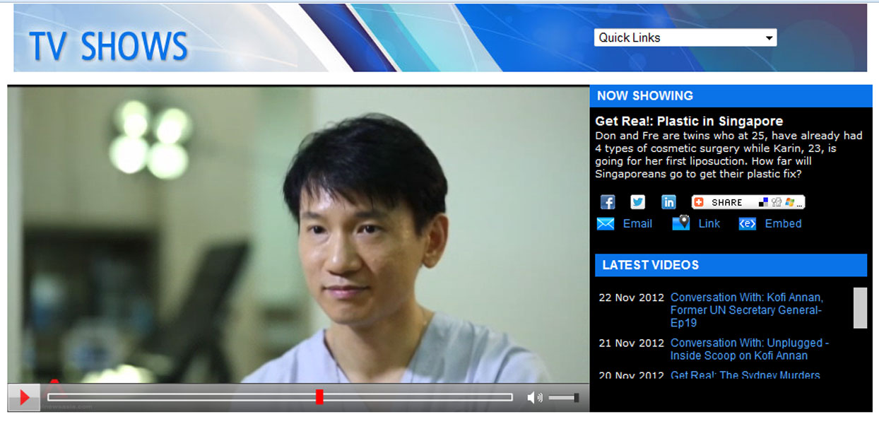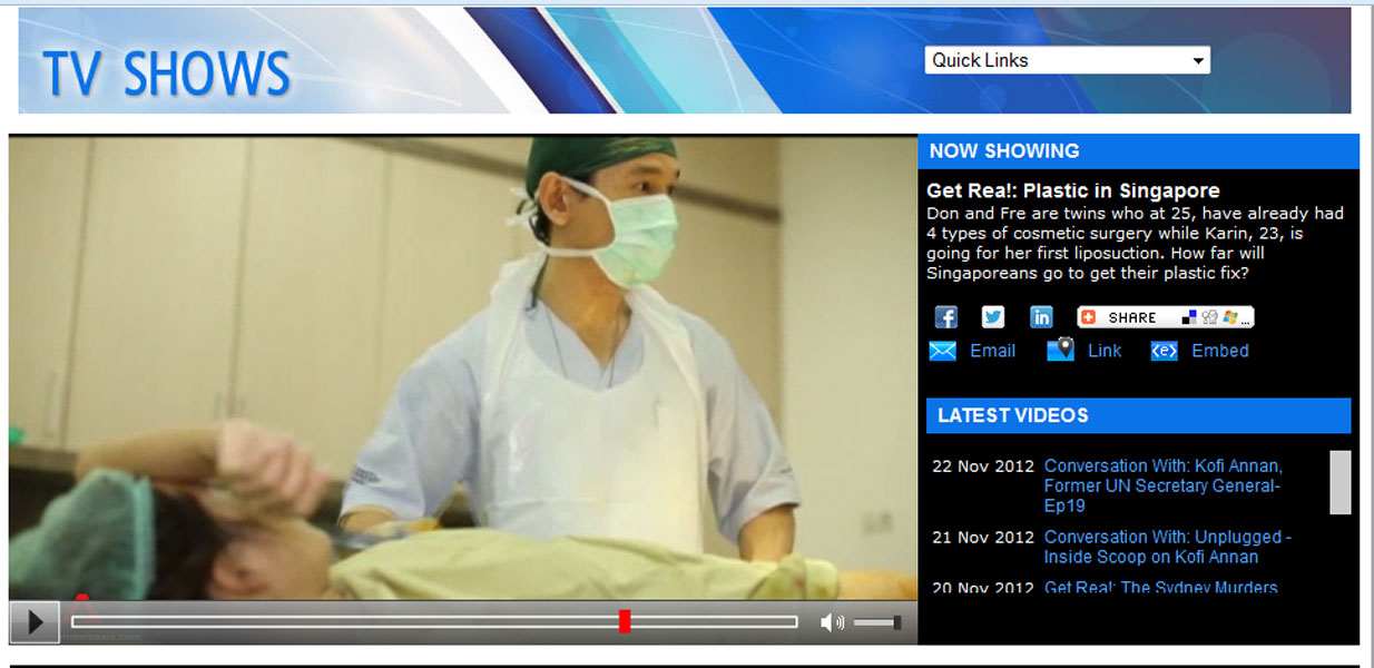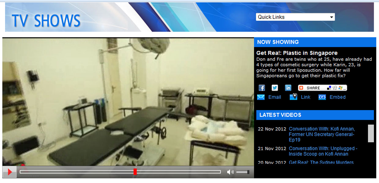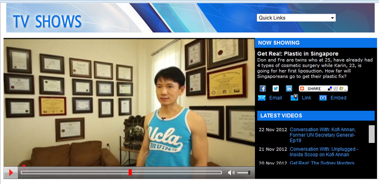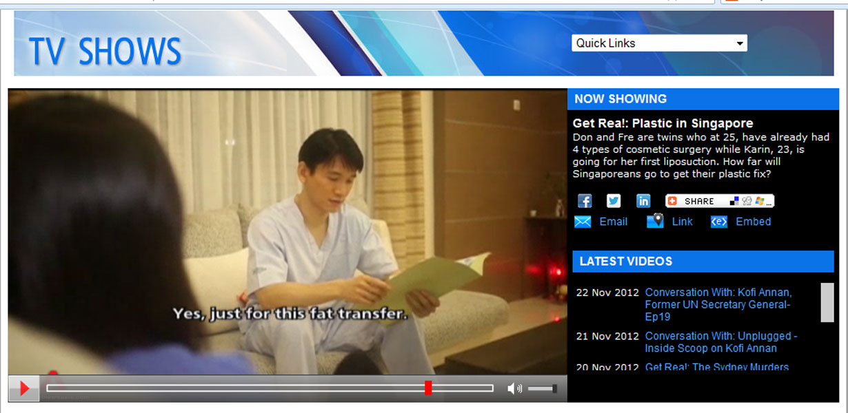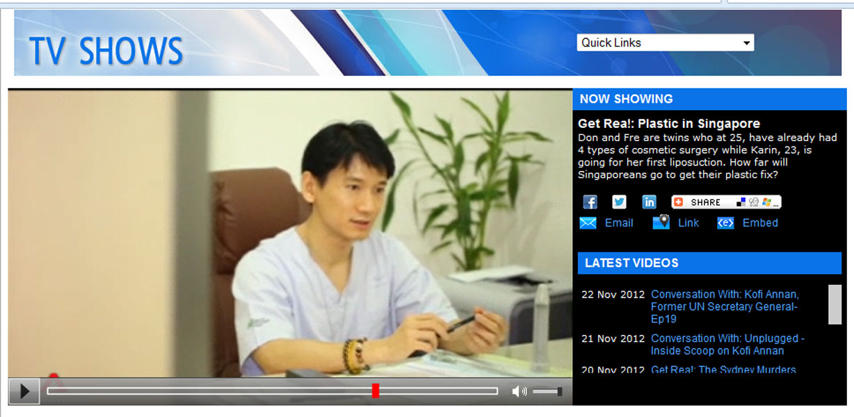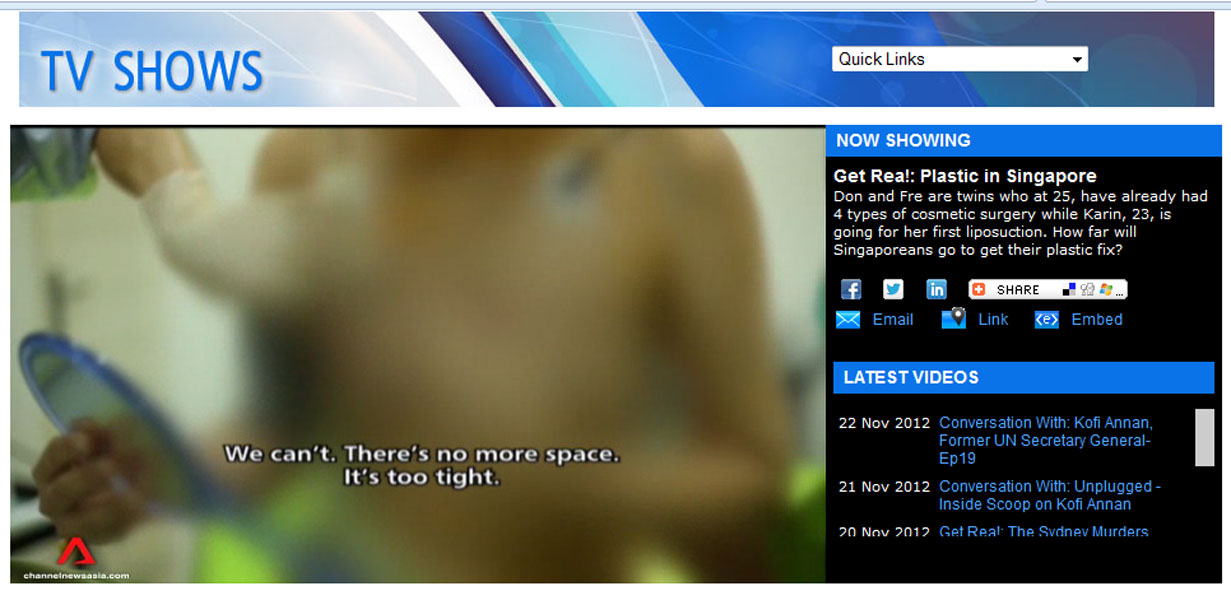 Editor's note: This is a reality TV show which has been produced to intentionally depict liposuction surgery as something scary and painful in order to create some drama. After all TV shows are all about dramas! There was a short segment where a patient who was undergoing surgery was caught to be screaming in pain for 3 seconds. This one-time off scream was kept being replayed throughout the show multiple times, and the scream was even extended on purpose. What viewers did not see behind the scene, was that the medical team was actually requested not to sedate the patient, so that the TV crew filming the surgery could chat and interview the patient throughout the surgery. The chat was never shown, of course. Only the part where patient was caught screaming was shown repeatedly. The before and after surgery result of both patients whose surgeries the TV crew covered, was not shown as well. There was a scene where a Singaporean plastic surgeon was pitted against our surgeon, saying that "syringe liposuction is a more traumatic way of doing liposuction, which causes much longer recovery". However, they contradicted this statement by showing a patient who just had whole lower body liposuction all the way from hips down to knees, walking up the stairs by herself 1/2 hour after her surgery was completed!! Subsequently, another patient who also had abdominal and thighs liposuction was shown walking around by herself shortly after surgery. The next day, the first patient went shopping, and another one headed back to Singapore. Both of them were shown walking normally, wearing their best outfits, barely 24 hours after surgeries on their thighs were completed! It was also stated that the second patient had been to our clinic 4 times! Had the surgeries been so scary and painful, would she have come back for the fifth time? Smart and wise viewers would have noticed this contradiction throughout the show! To our best knowledge, this TV show aims to create drama, however it does not depict the whole truth about liposuction surgery, especially syringe liposuction which has made us so popular around the world today. Syringe liposuction is in fact, the safest method of performing liposuction! To learn why, please read this page: http://elixirdevie.sg/liposuctioncasestudies.html