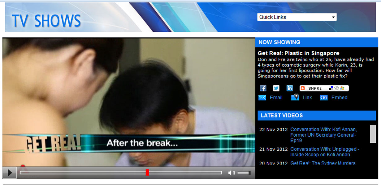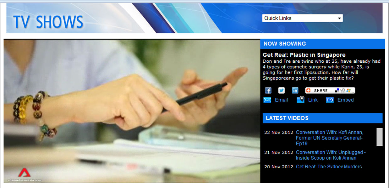 Get Rea!, Channel News Asia 12 November 2012 (8 PM Singapore time)